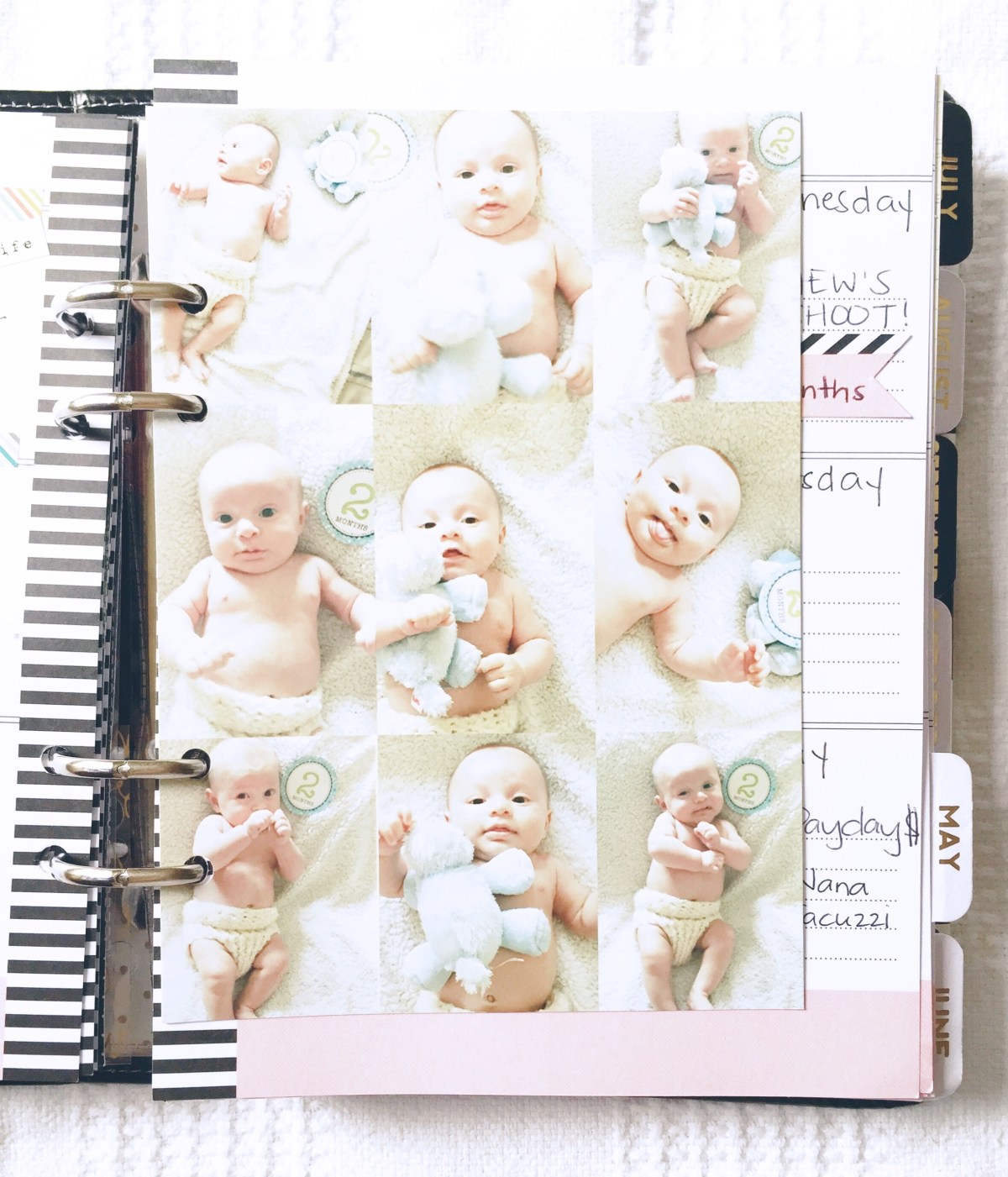 Sometimes I like to insert a few journaling cards with extra photos or journaling. These will be so much fun to find later on when you look back at previous months.