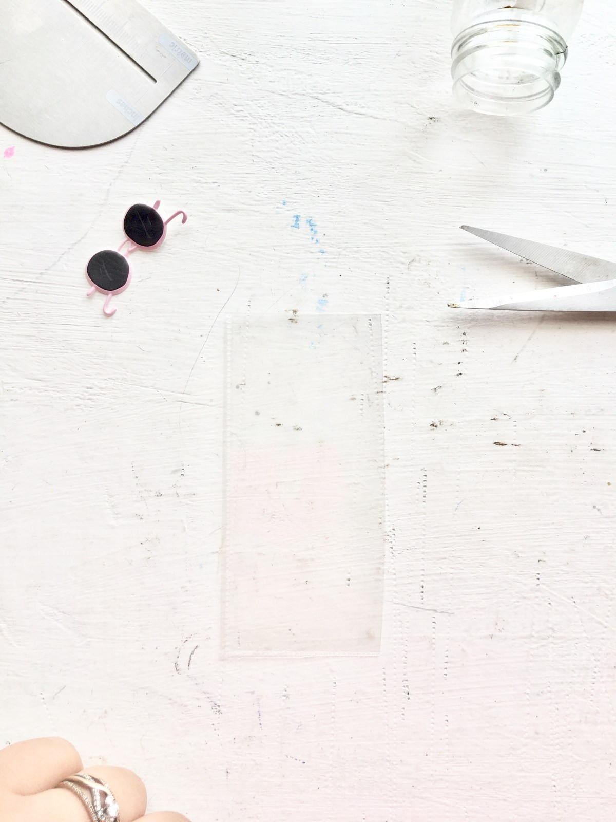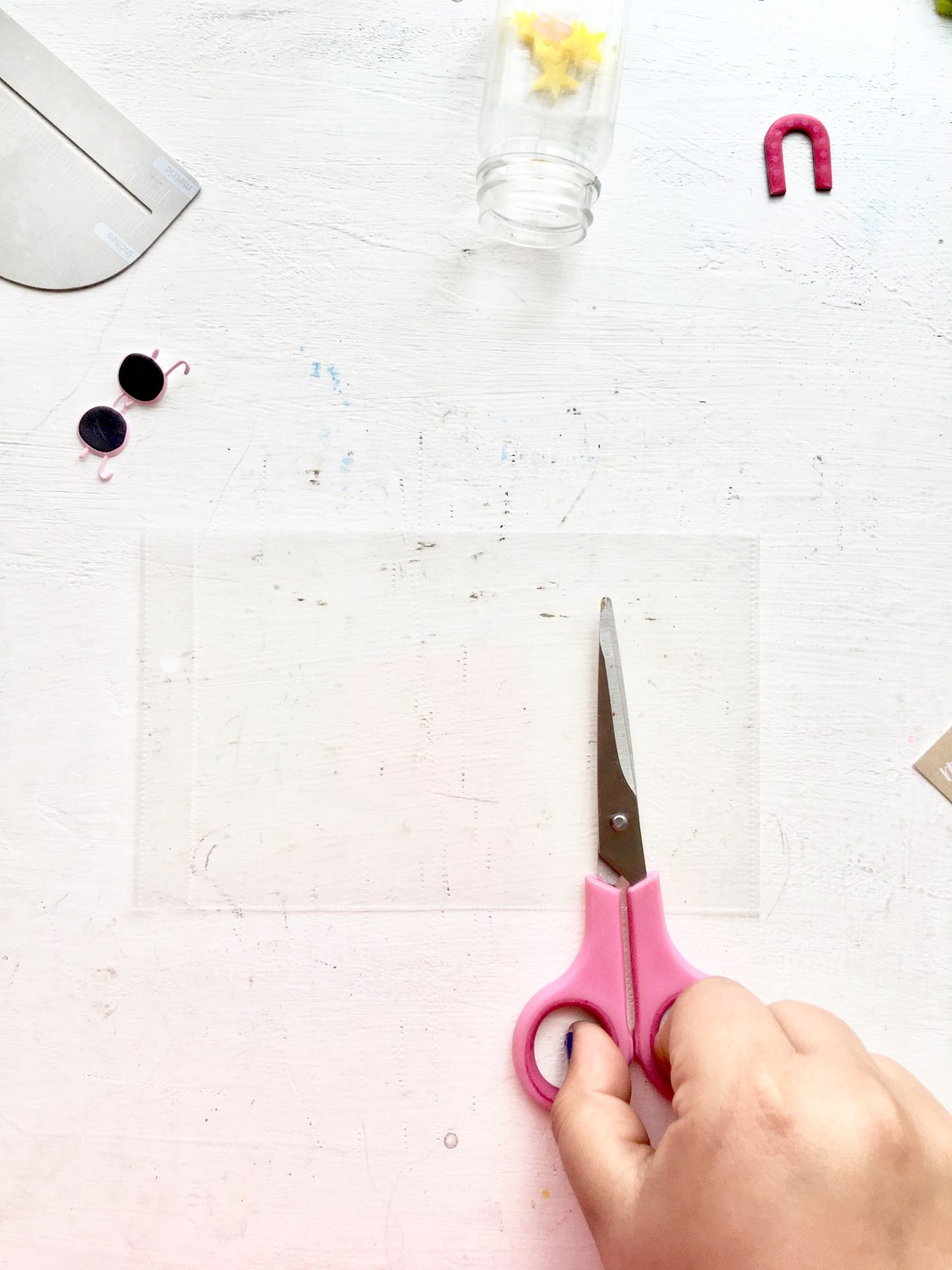 You’ll need some page protectors. Any size will work. I use a 6×8 sheet that had two 4×6 pockets and cut one of them off.