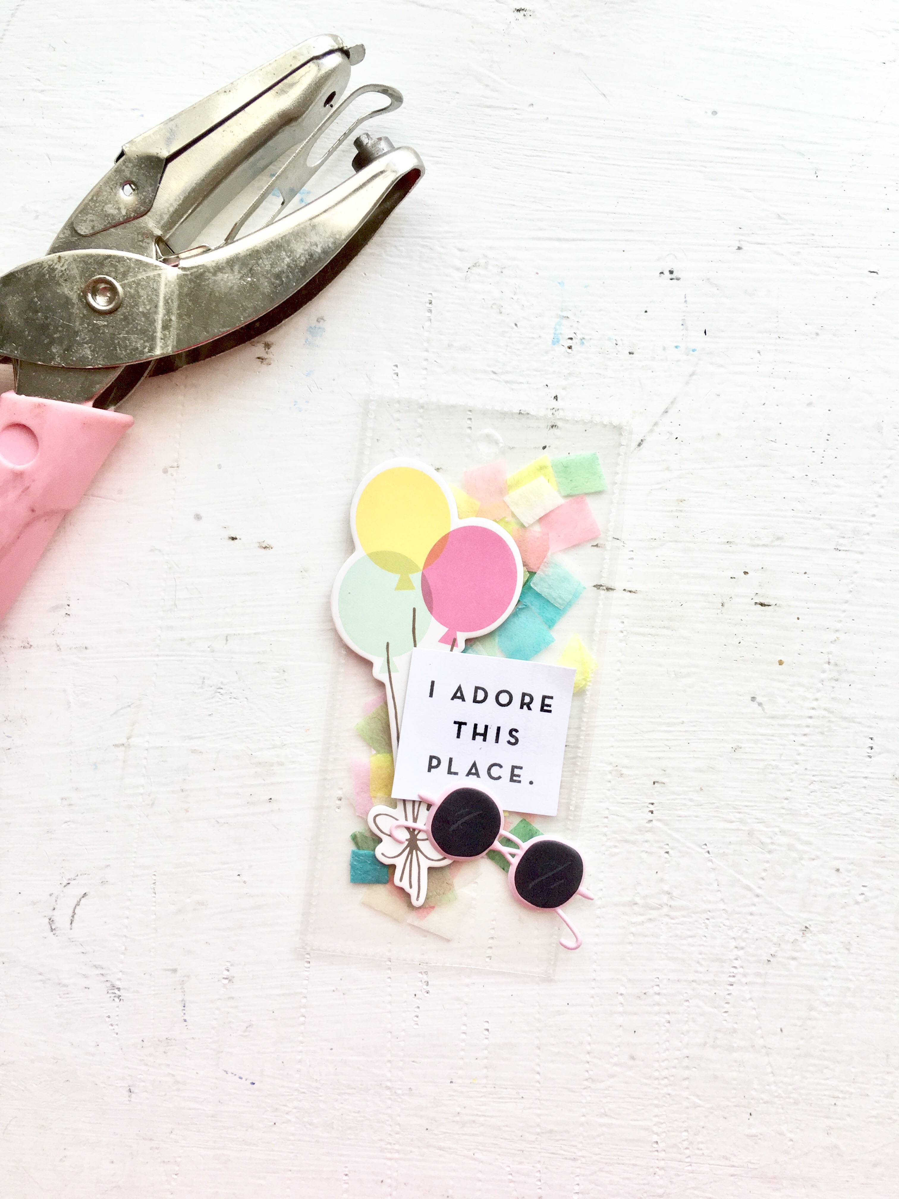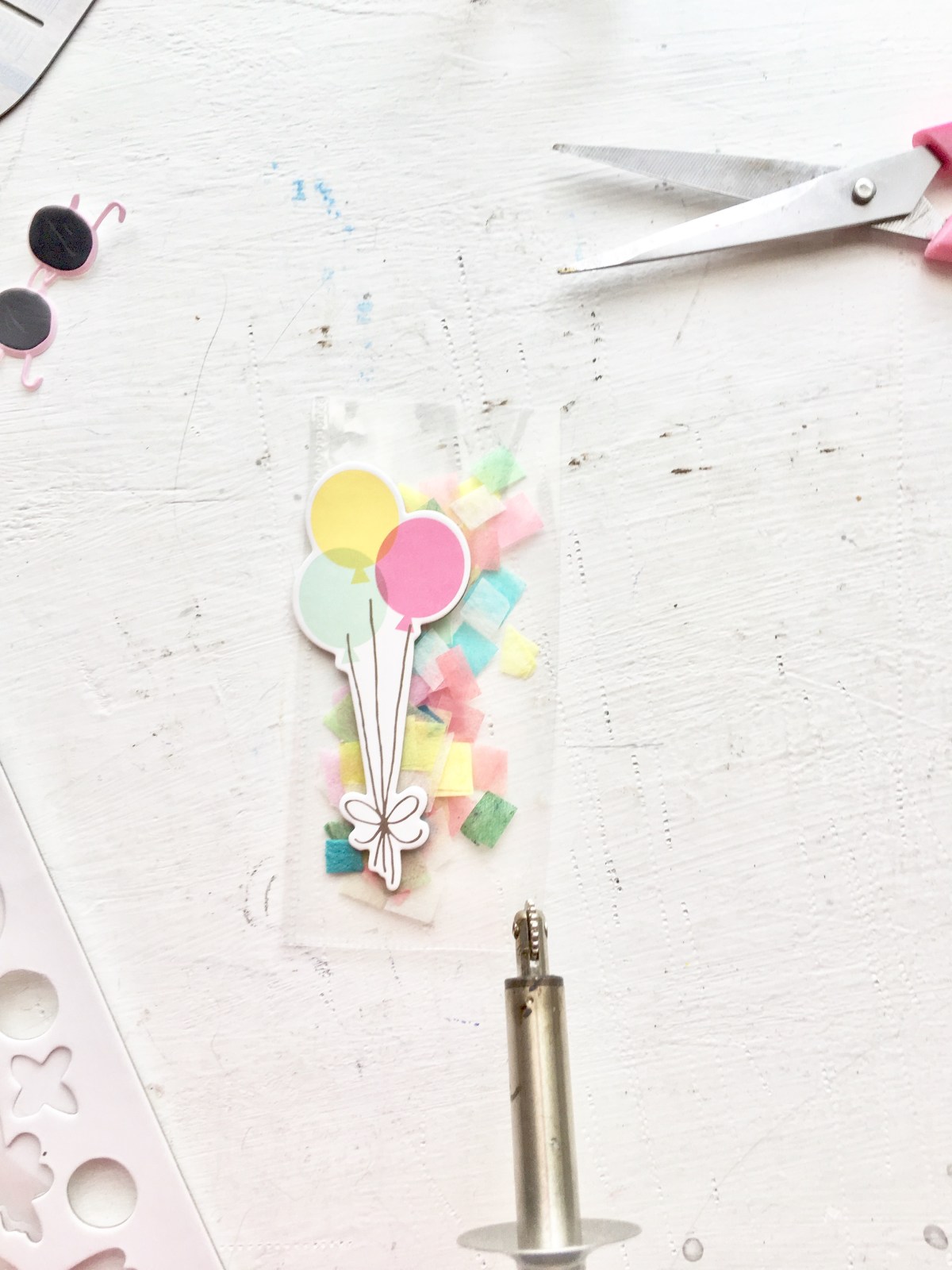 If you have two open sides on each side, fuse or sew one side so you may begin filling them. I love to add some tissue paper confetti I was gifted by my good scrappy friend, Mariana. Thanks, girl!
