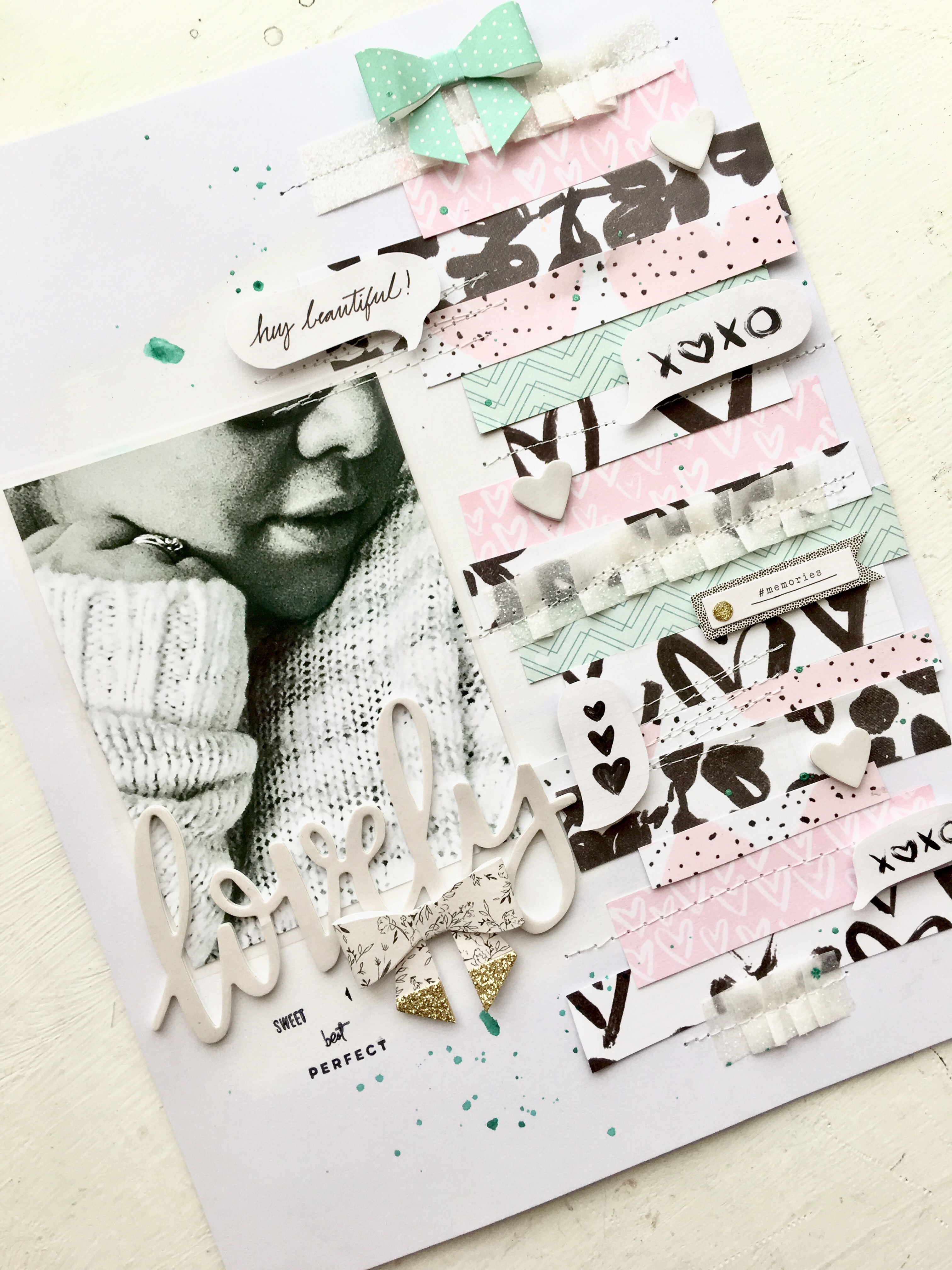 I should mention, all the word strip papers were Crate Paper; some are Maggie Holmes and others are Heart Day and Oasis collection.