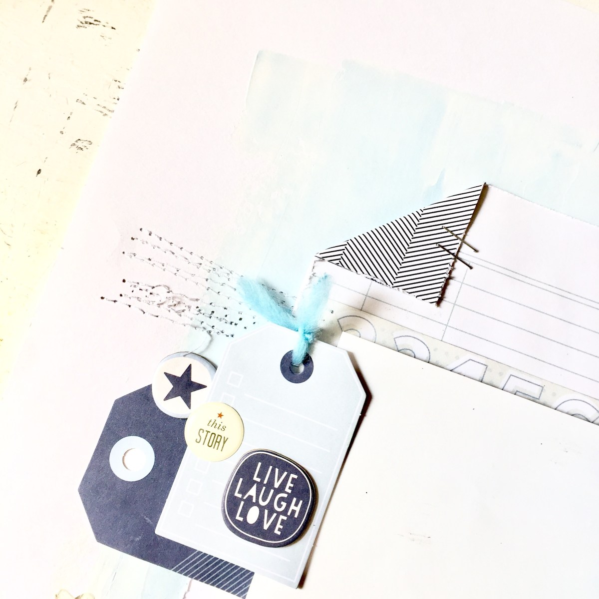 The first project I created was one using a monochromatic color scheme. The first thing I noticed about the July kits were all the mix of dark navy and baby blues.