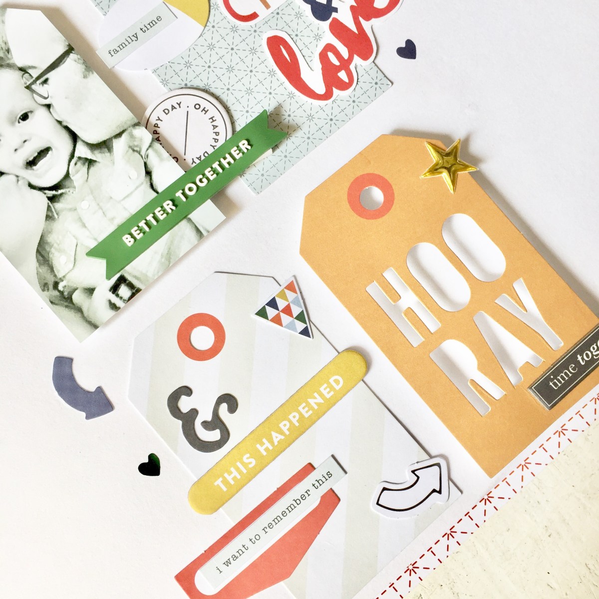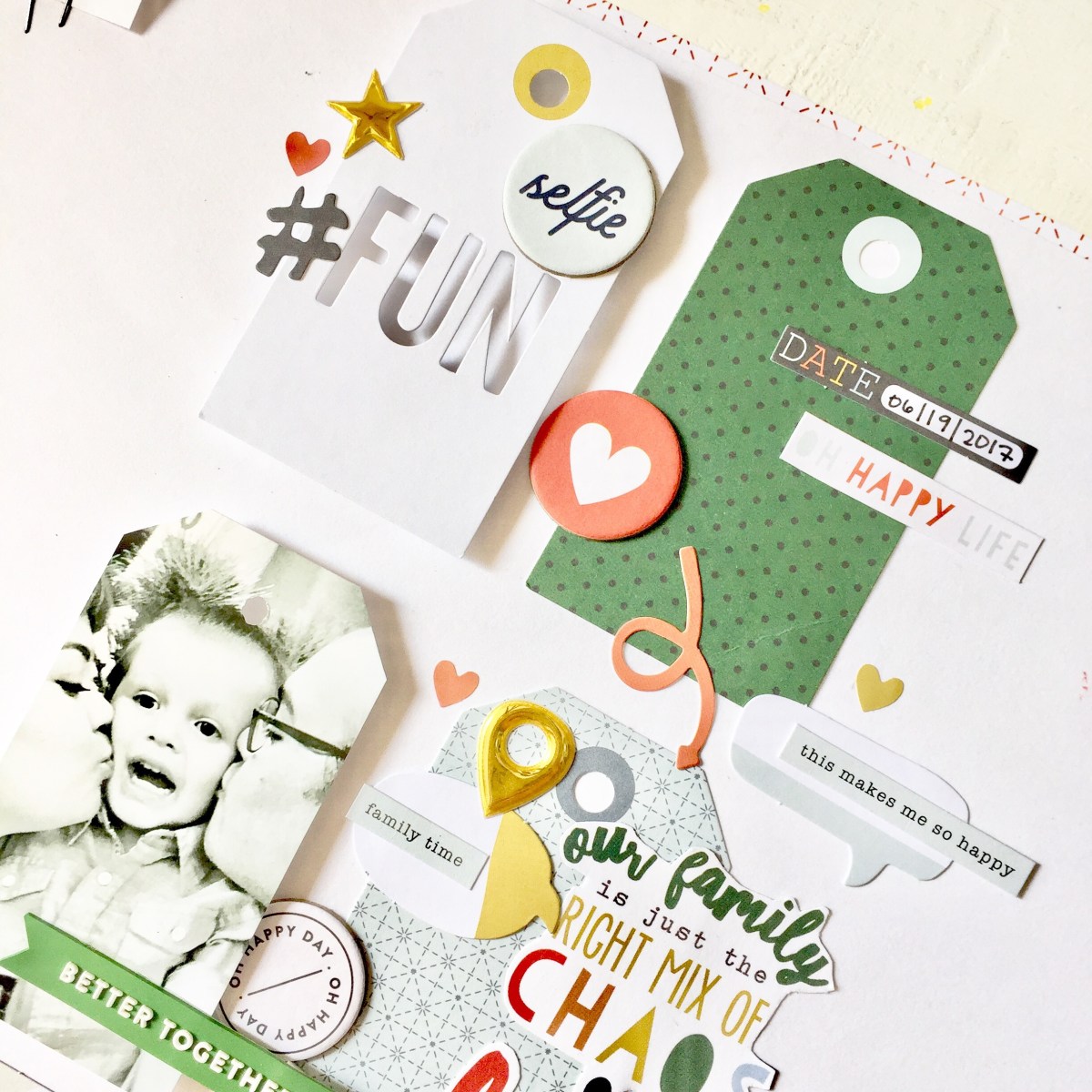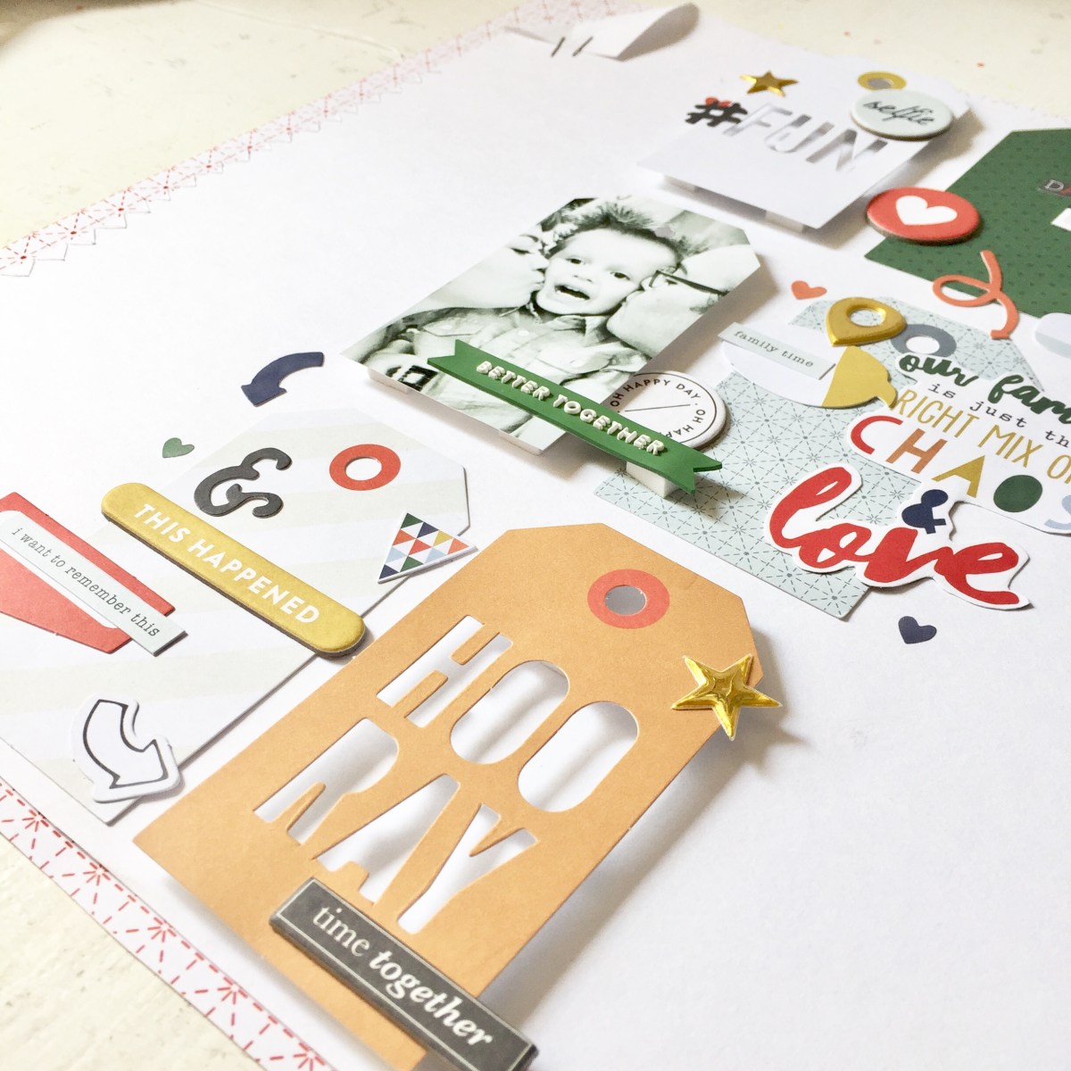 This layout was a blast to create! I had so many bits and pieces from all the kits and these super cute laser cut tags. I knew that I had to create something fun and full of details.