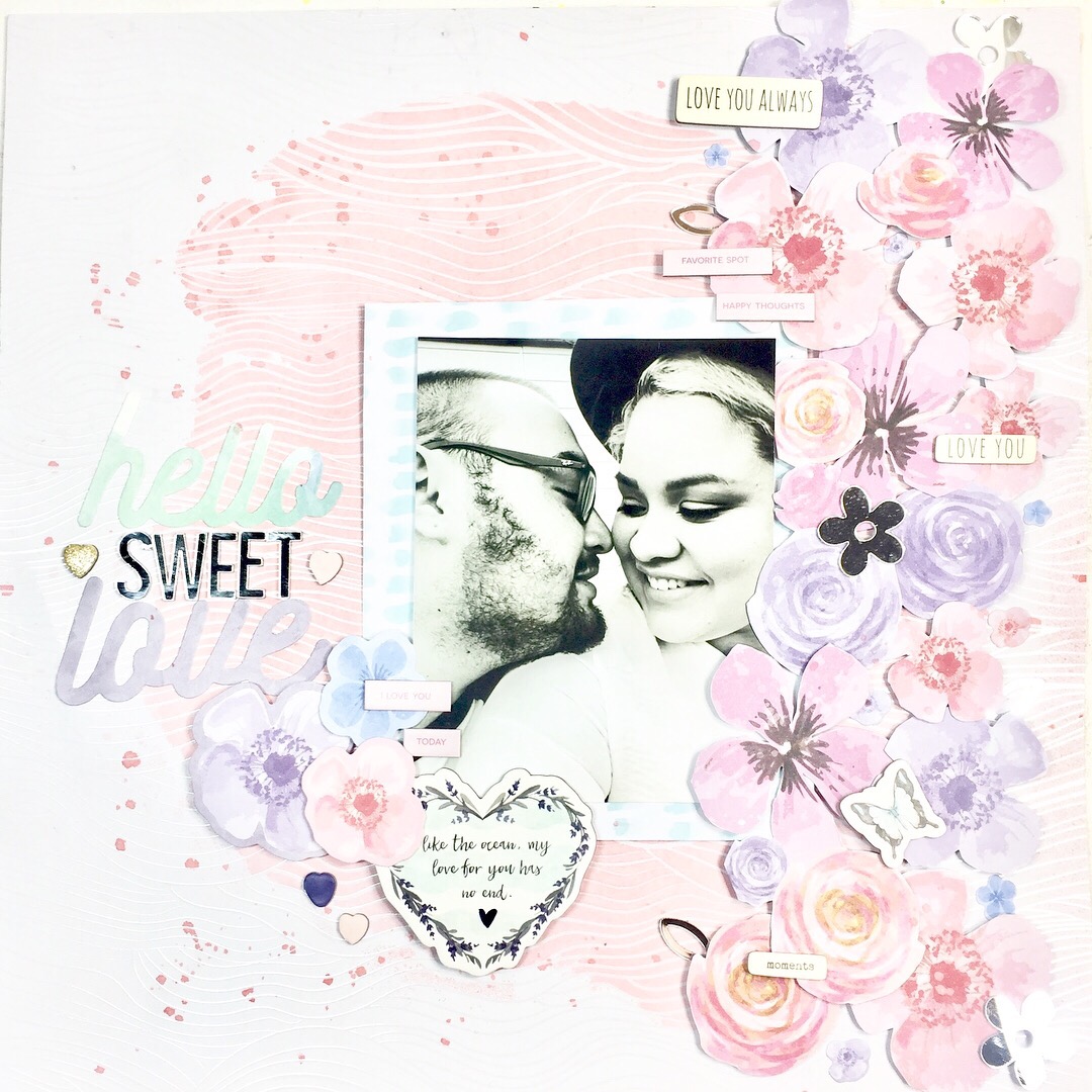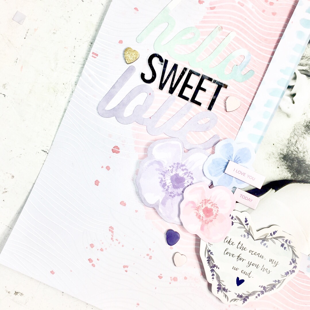 Well, I’d love to hear what you most love about this layout? I gotta say, I love all the pink and the super cool specialty paper!