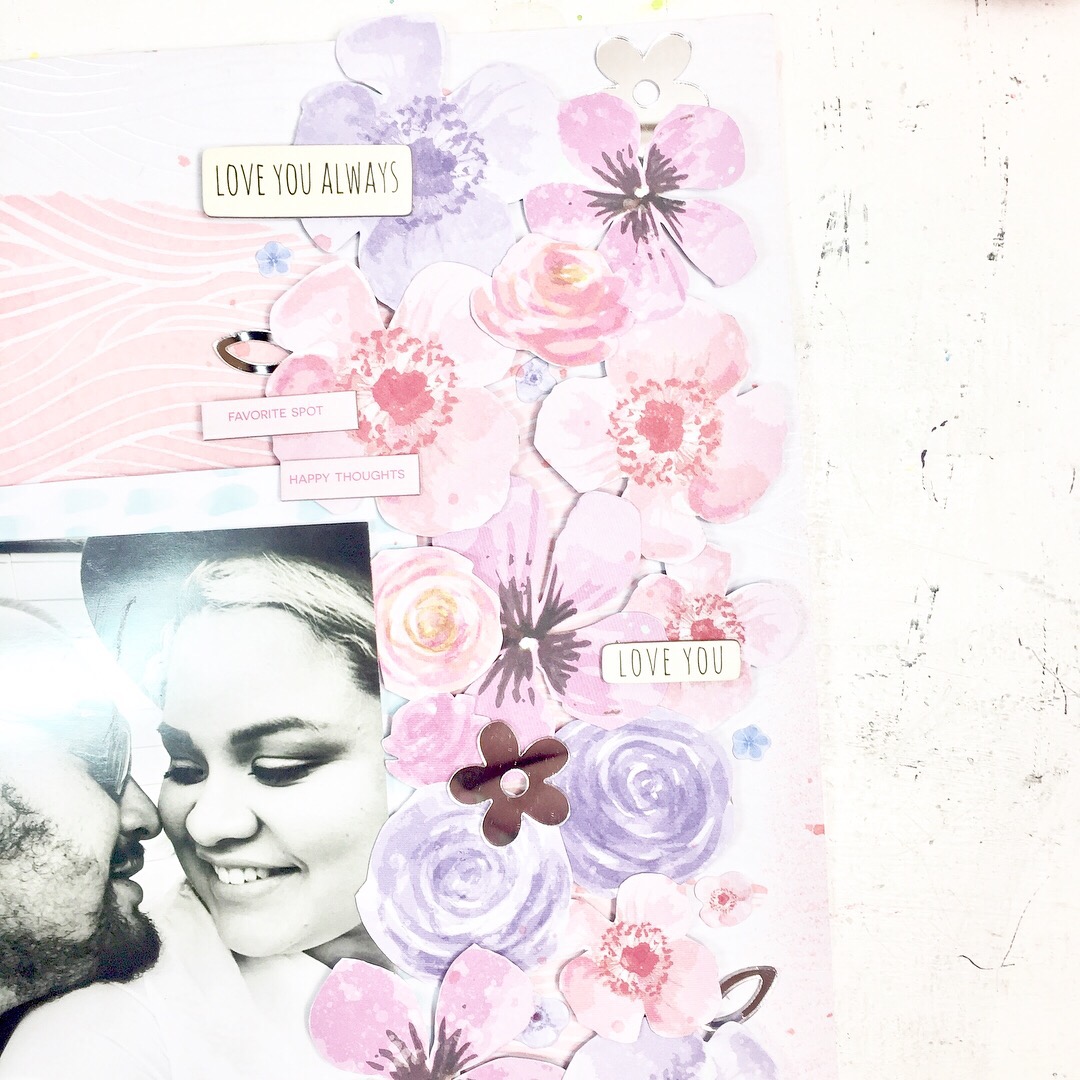 Well, I’d love to hear what you most love about this layout? I gotta say, I love all the pink and the super cool specialty paper!