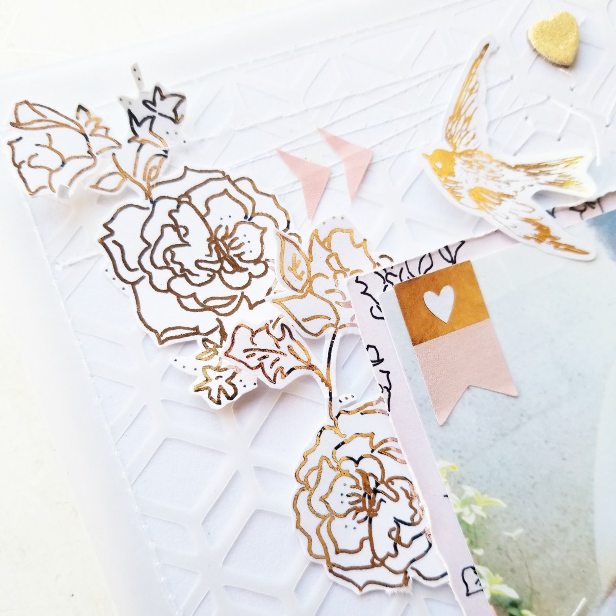 I added so many fun details to this layout as well, like stitching throughout a few parts of the layout so that the threads show just a tiny bit above the cutfile and under my embellishments.