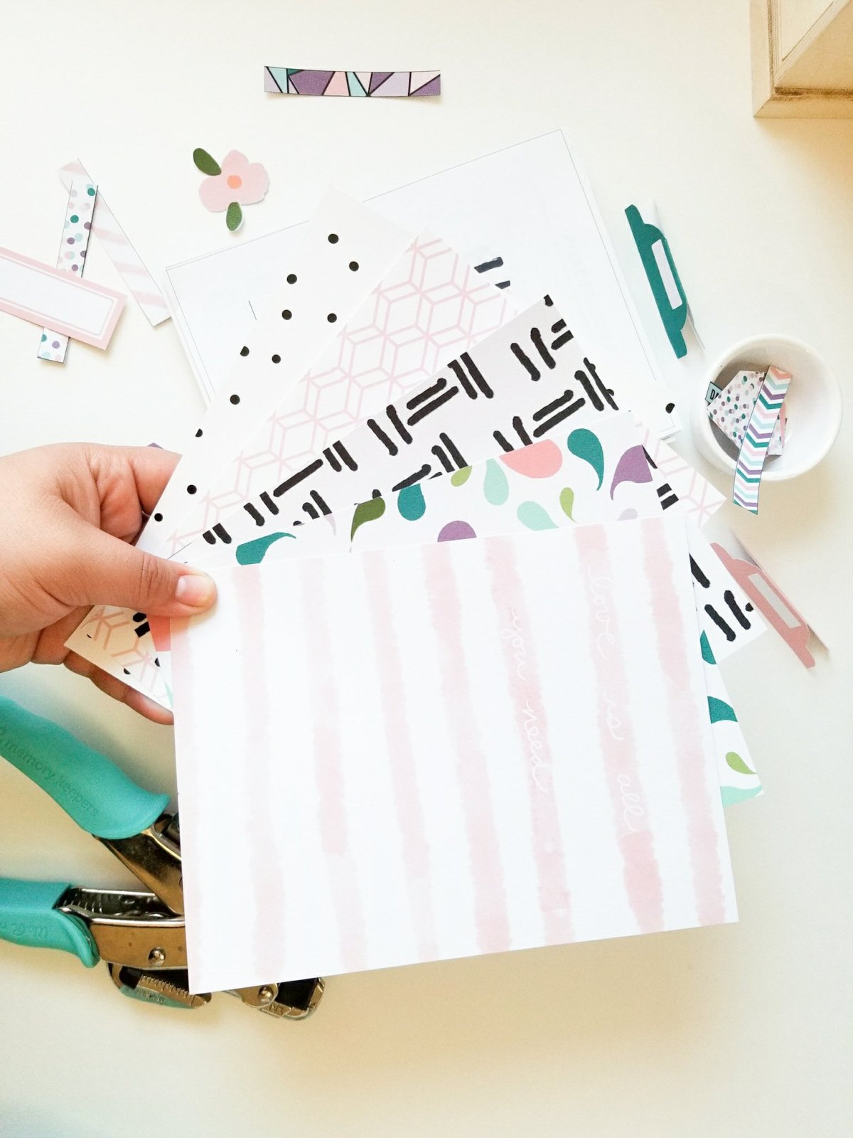 I had printed off a few of my favorite 3×4 and 4×6 cards from this month and last month, into 6×8 size simply by resizing them on word and then printing in bunch.