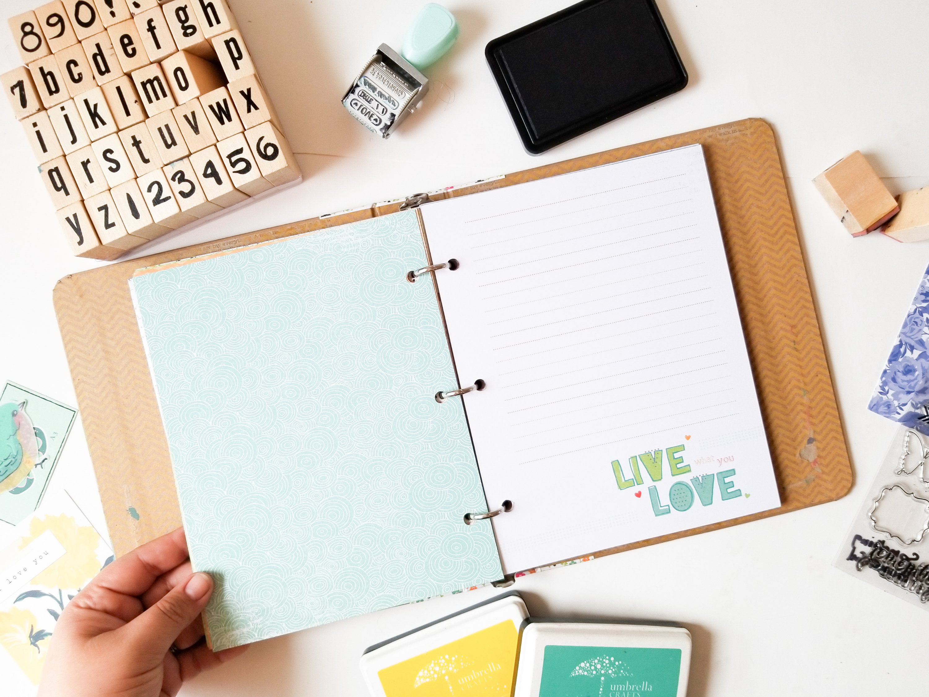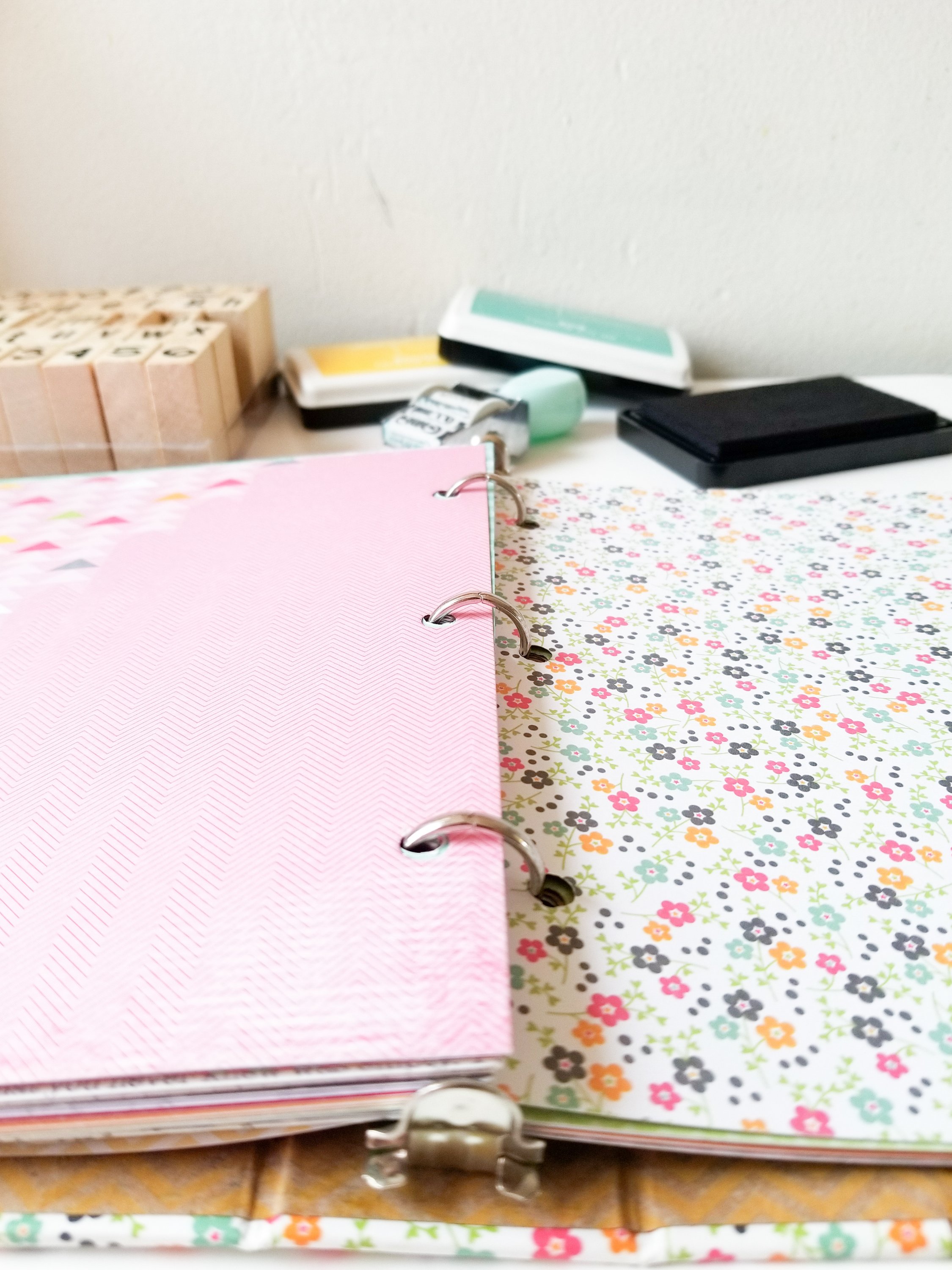I have had this “smashbook” type album by Recollections in my stash for years now. I feel like this 6×8 book has the perfect foundation pages already in it. Its filled with journaling pages with pretty, bright, and colorful papers. I don’t even have to fuss around my stash to set up anything, so score!