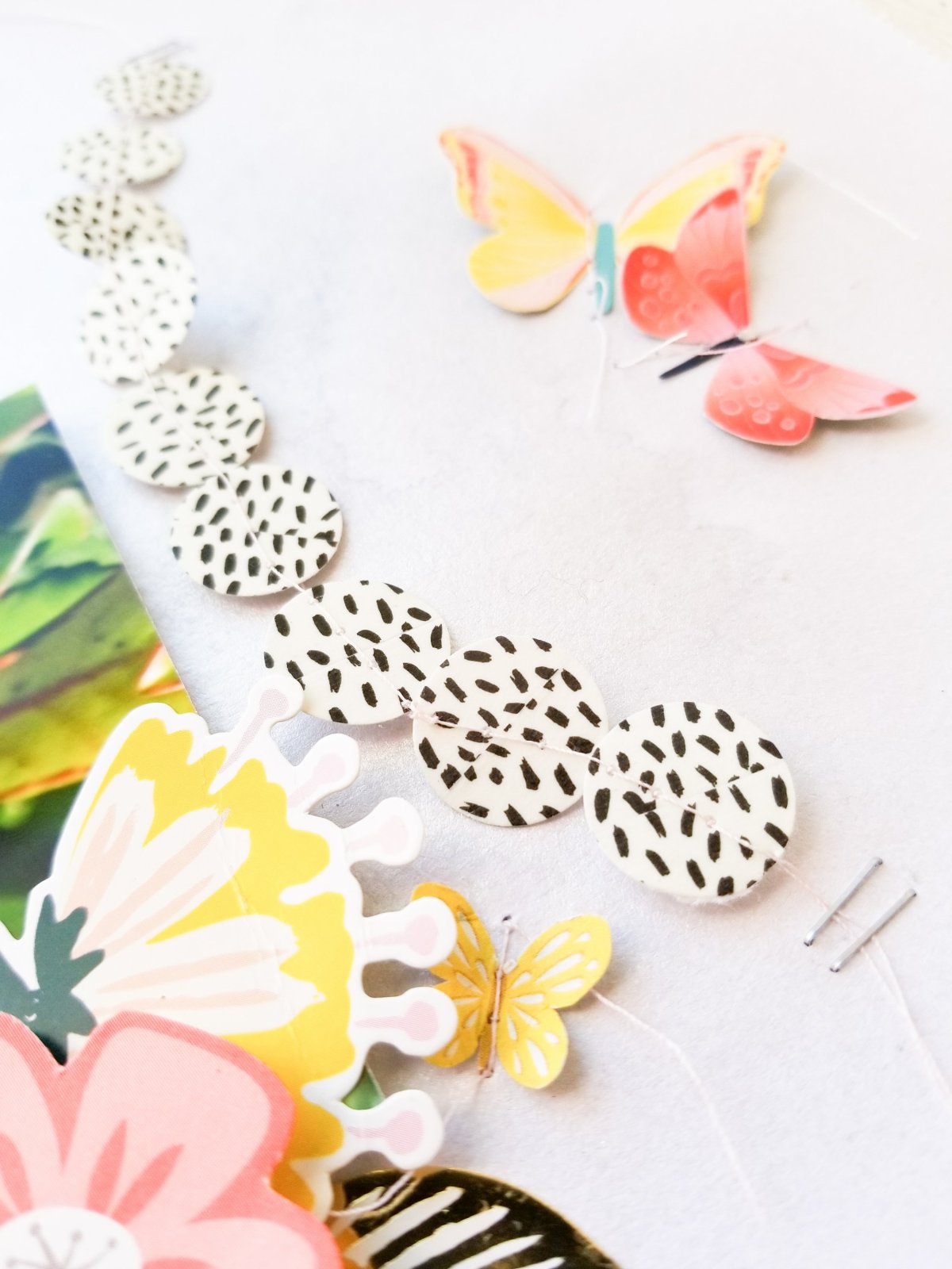That was when I decided to get a little creative and use the black and white patterned washi from the Good Vibes collection to create the circle punches banner that you see here: