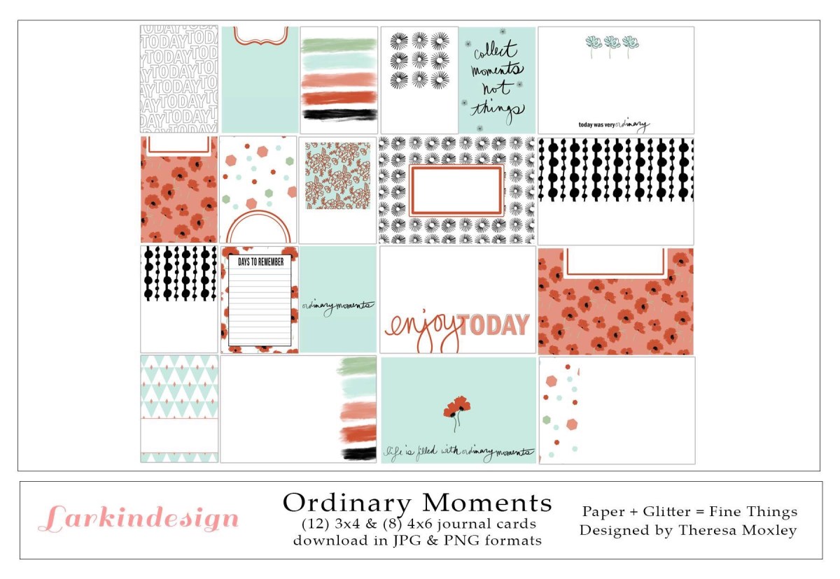 Today I am here to share the May release at Larkindesign, titled “Ordinary Moments“, and a 12×12 mixed media layout I created using the papers and cut file for this month. Here is a quick look at the collection, which you can purchase here. Plus, I must mention that the cut files are available for FREE all month long!!
