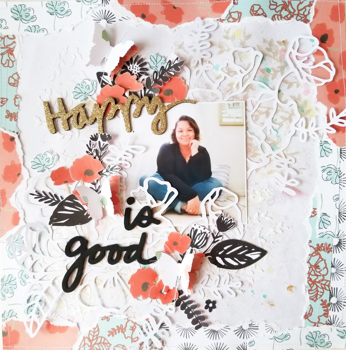 I love this title: Happy Is Good. Those are words to live by and it’s so much fun and therapeutic to scrap something like this for myself.