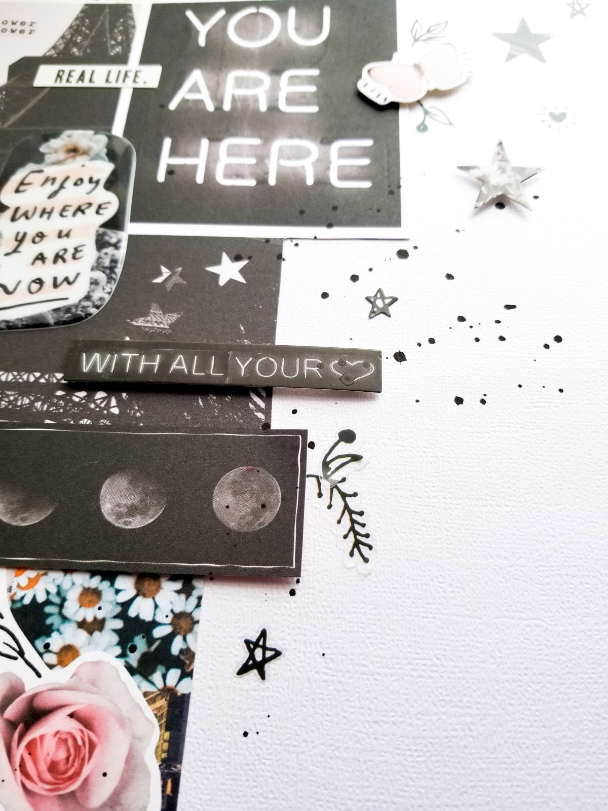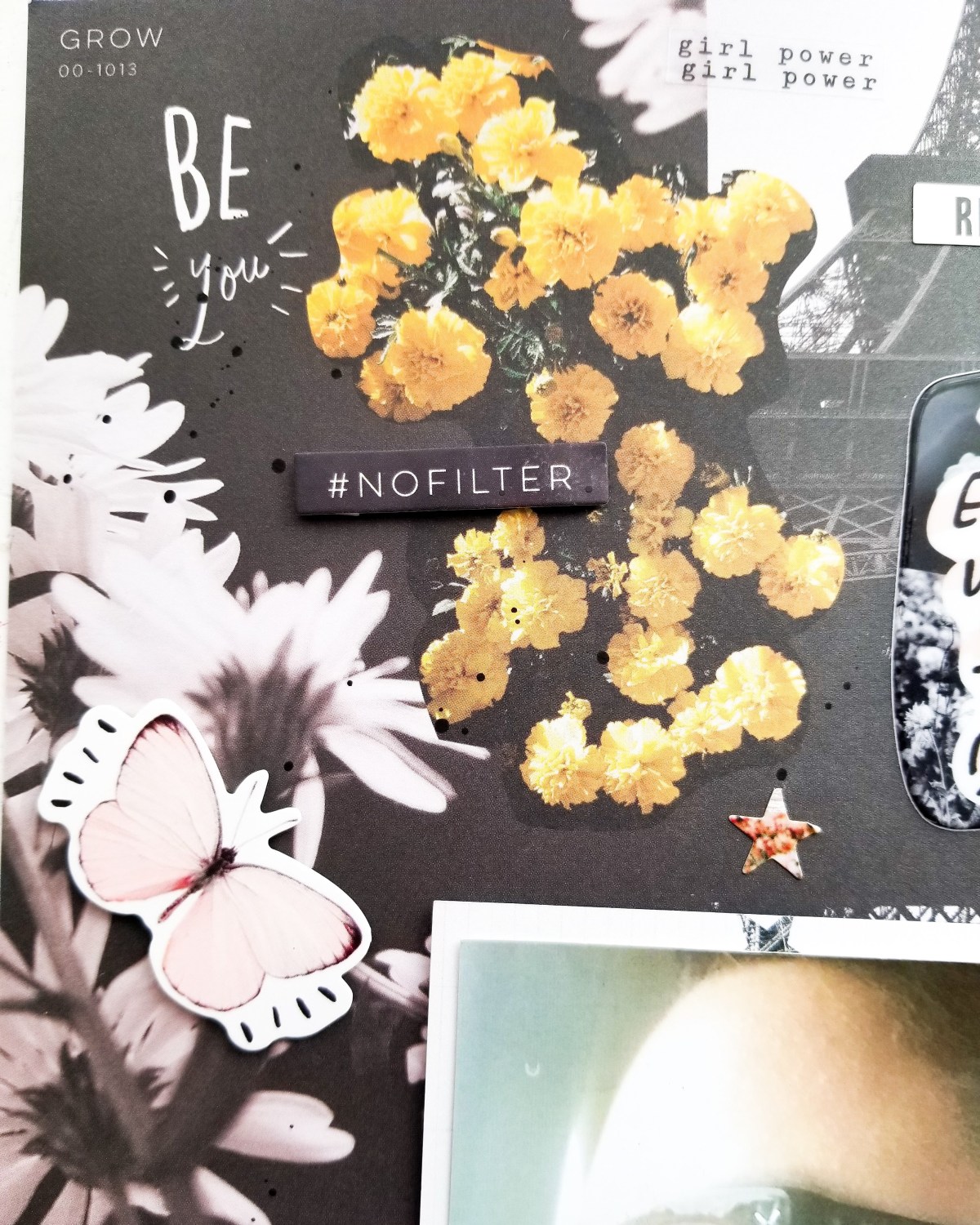 I decided to bring out all of the stickers that were available to me to add more layers to the patterned paper I added as my base. Like I mentioned before, this collection has the most awesome feminine power vibes and I had to create something inspirational out of it for myself! The sheet I used has a very fun poster feel to it, so I used part of it o. This layout and part of it on the previous sketch layout!