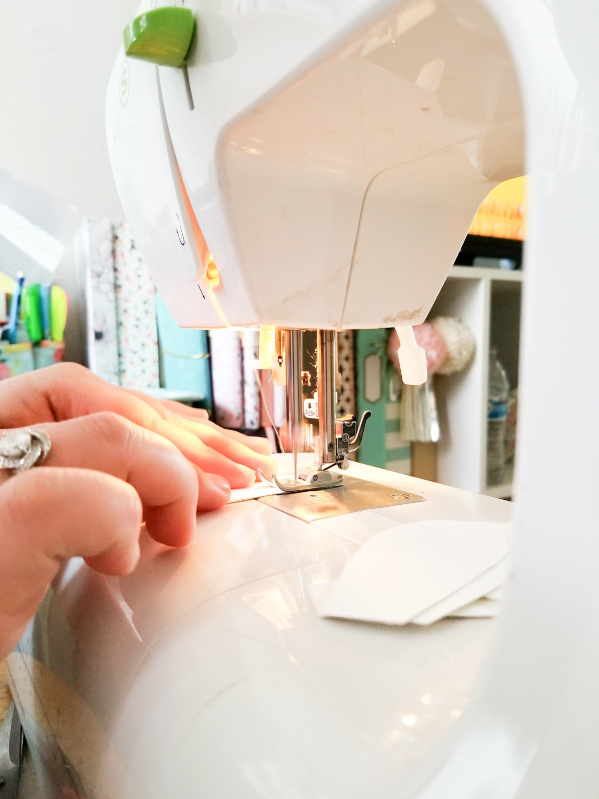 I doubled up on the ears so that they would be a bit more sturdy and then I ran them through with my sewing machine to stitch out the inside folds of the ear ( idk if that makes sense! But check image below).