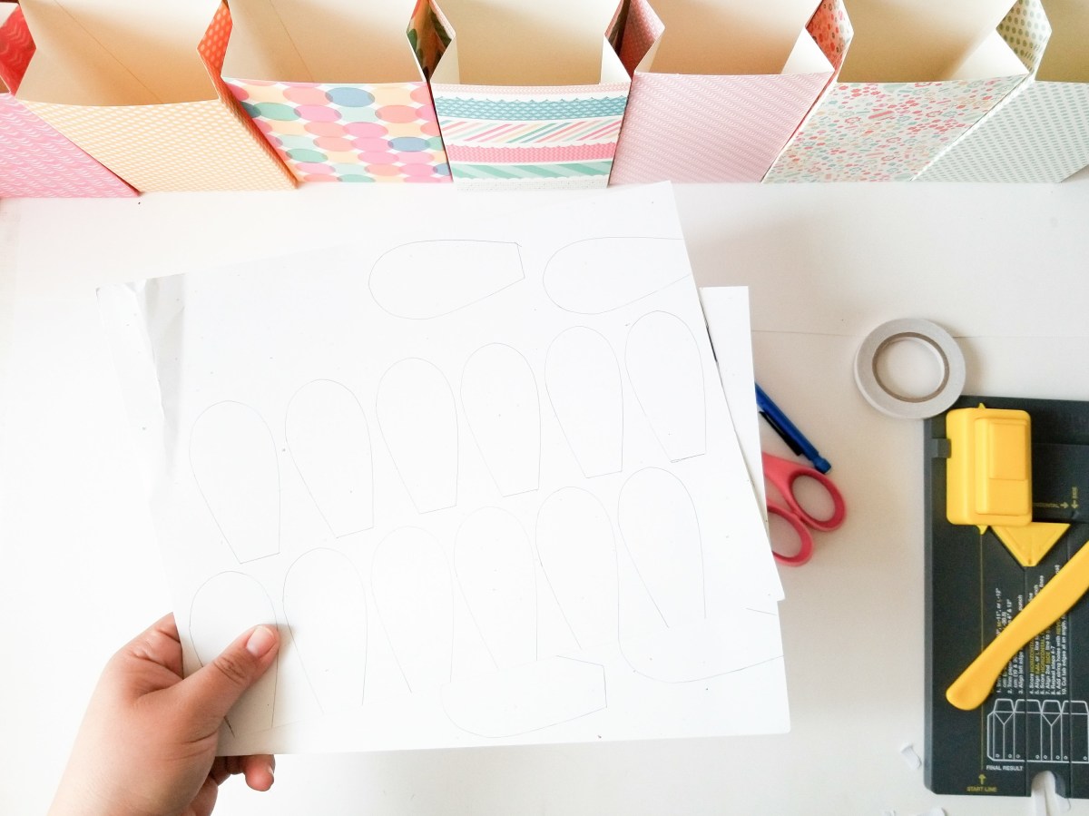 I grabbed some Card stock to freehand a bunny ear and I used that to trace enough for all of my baggies.