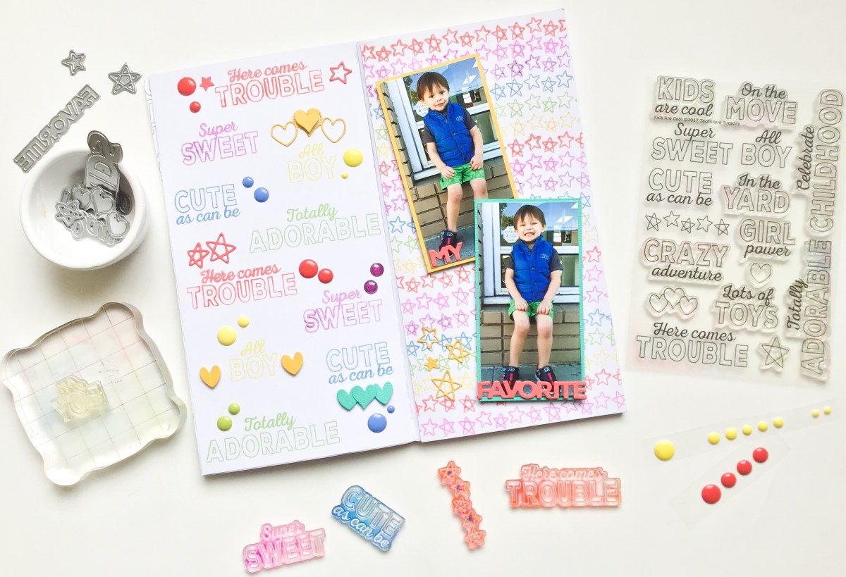 - In the Spring, Summer and Fall I played with the gorgeous dies and stamps from Technique Tuesday. These challenged me in the best way… I created many layouts using ONLY stamps!