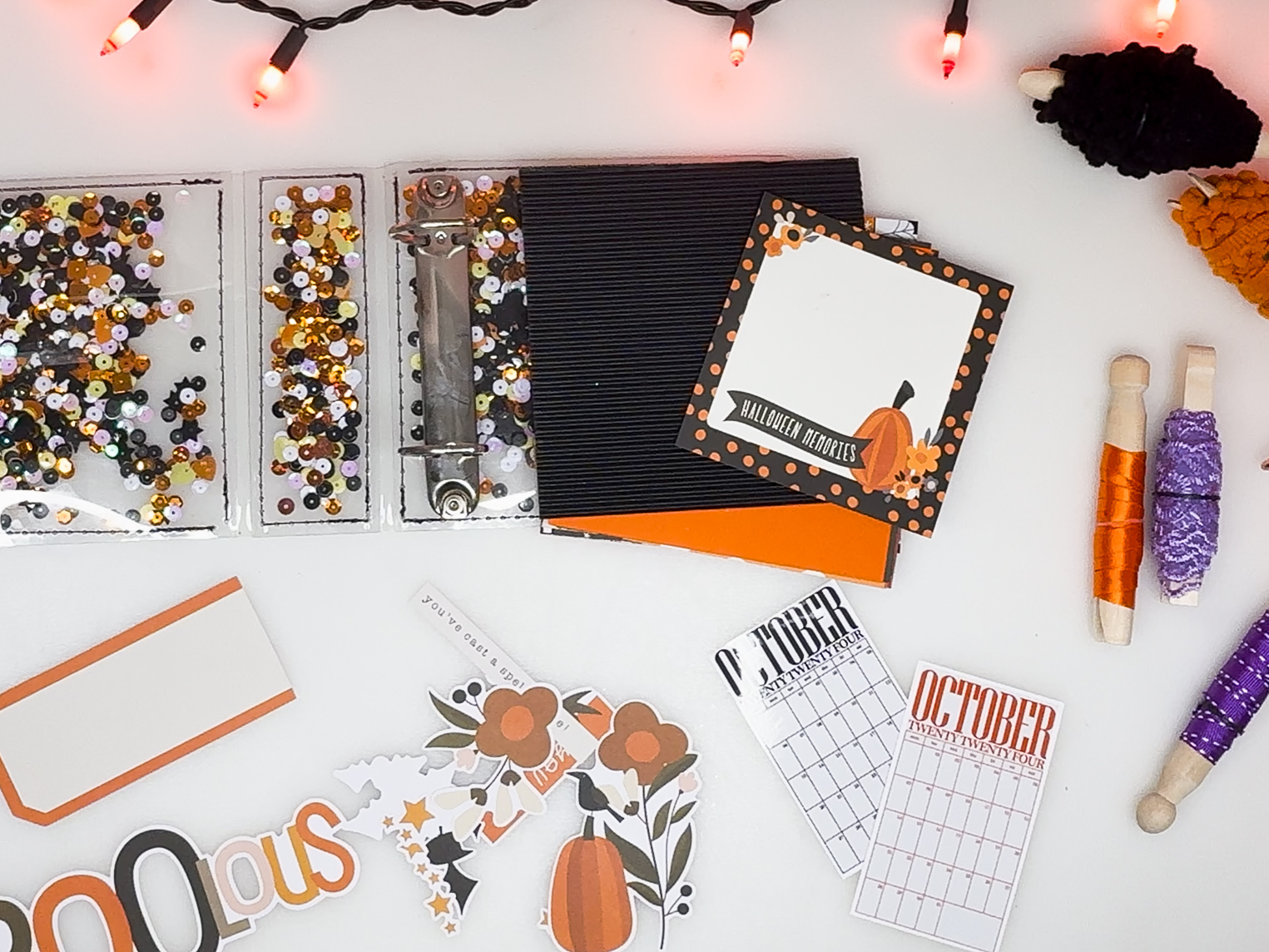 Get ready to watch me create the chunkiest sequined mini album. I will use an eclectic assortment of Halloween supplies that I’ve just sorted. This will help me document all the spooky fun from October 2024!